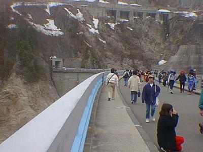 ダムの上は、都会のような混雑